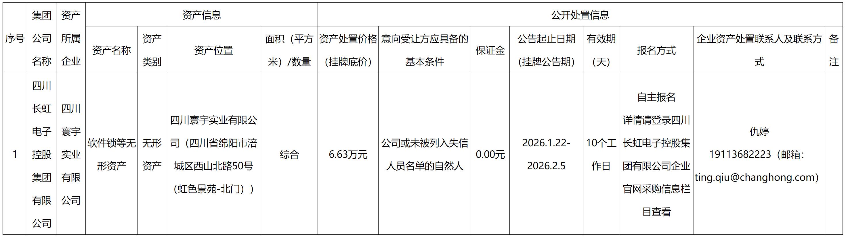 四川寰宇實業(yè)有限公司資產(chǎn)處置公告