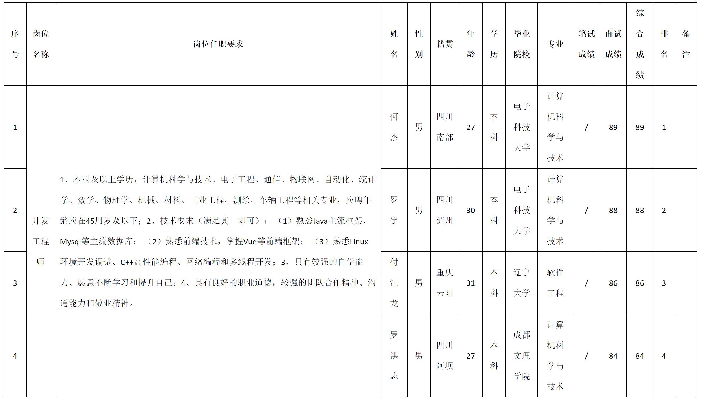 根據四川九洲投資控股集團有限公司軟件與數(shù)據智能產業(yè)發(fā)布的招聘公告及招聘相關規(guī)定,現(xiàn)將測試成績予以公示。