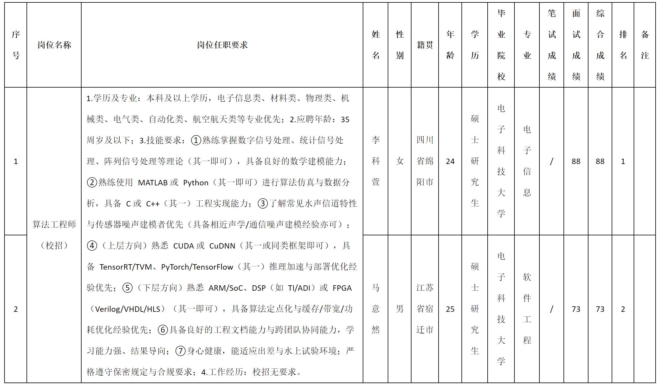 根據(jù)四川九洲電器集團(tuán)有限責(zé)任公司發(fā)布的招聘公告及招聘相關(guān)規(guī)定,經(jīng)測(cè)試、考察、體檢等程序,擬錄用顧俊峰同志到四川九洲電器集團(tuán)有限責(zé)任公司工作,現(xiàn)予以公示,具體情況如下: