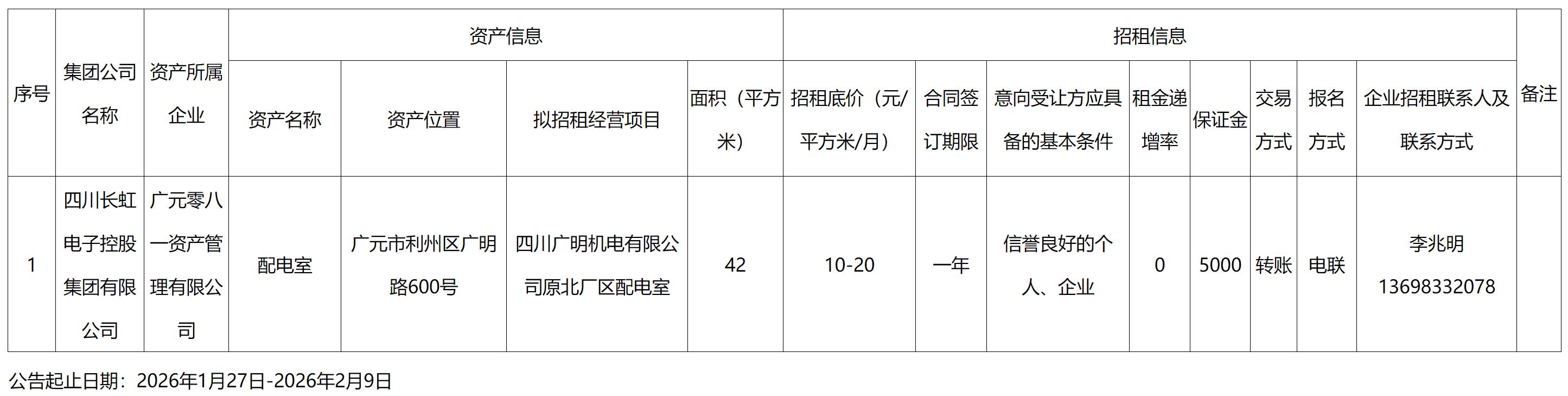 廣元零八一資產(chǎn)管理有限公司資產(chǎn)出租公告