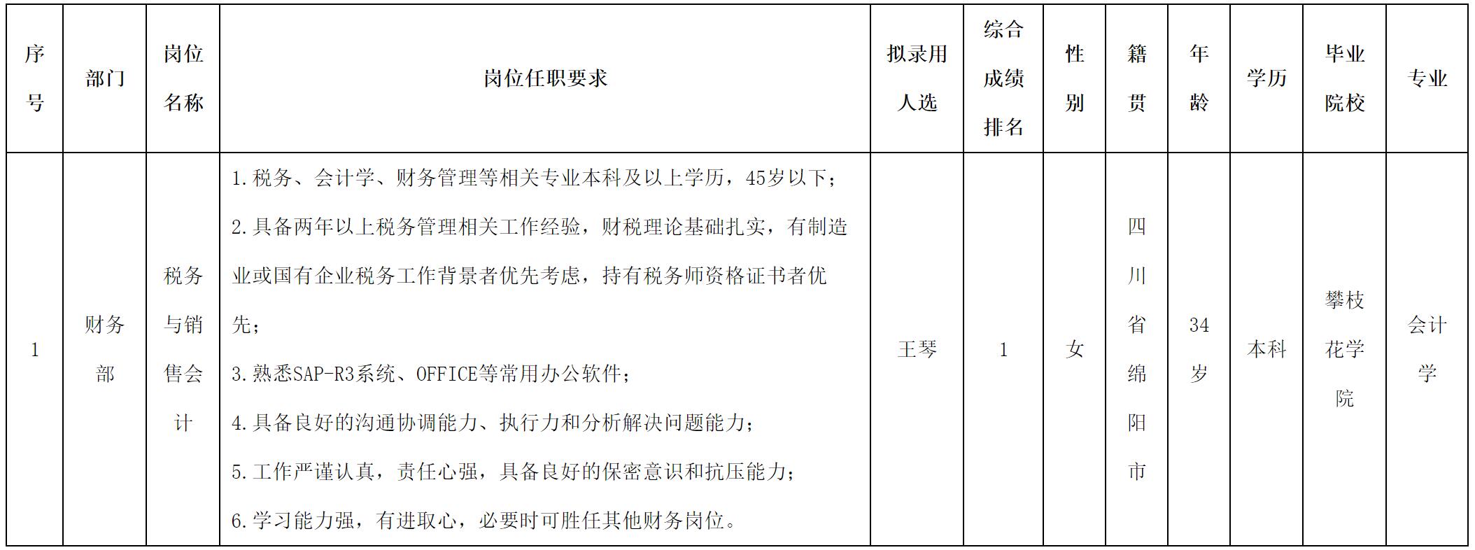 根據(jù)四川愛聯(lián)科技股份有限公司發(fā)布的招聘公告及招聘相關(guān)規(guī)定,經(jīng)面試,擬錄用王琴同志到財務(wù)部工作,現(xiàn)予以公示,具體情況如下: