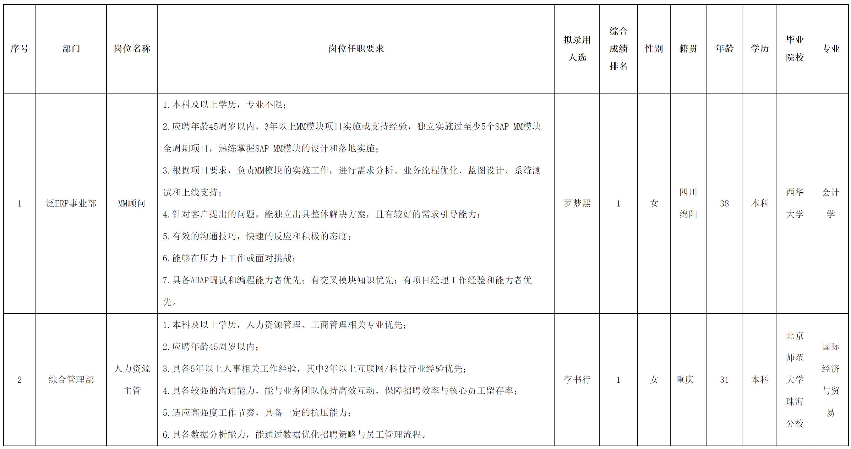 根據(jù)四川虹信軟件股份有限公司發(fā)布的招聘公告及招聘相關(guān)規(guī)定,經(jīng)測試、考察、體檢等程序,擬錄用羅夢熙、李書行同志到四川虹信軟件股份有限公司工作,現(xiàn)予以公示,具體情況如下: