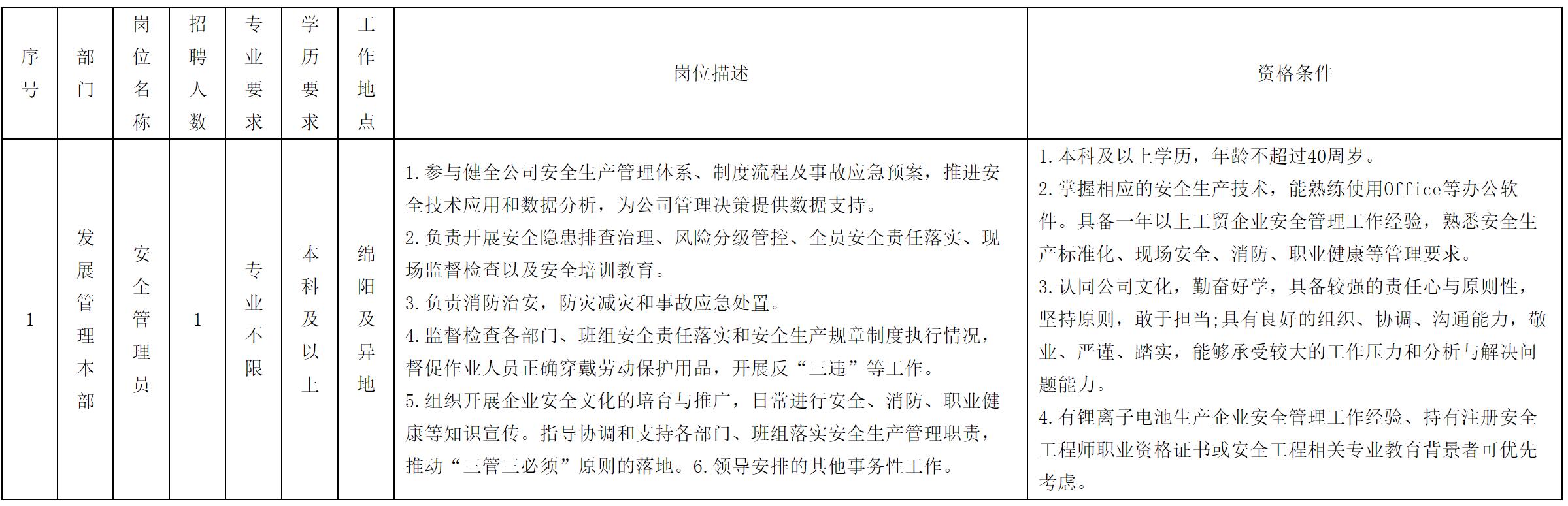 因經(jīng)營(yíng)業(yè)務(wù)需要,現(xiàn)公開(kāi)招聘安全管理員1名,具體職責(zé)及要求如下: