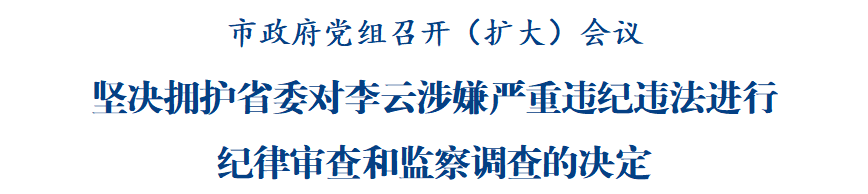會議指出,省紀委監(jiān)委對李云涉嫌嚴重違紀違法進行紀律審查和監(jiān)察調查,充分彰顯了省委持之以恒推進全面從嚴治黨的堅定決心,充分體現(xiàn)了保持反腐敗高壓態(tài)勢不動搖的鮮明態(tài)度,再次釋放了反腐敗無禁區(qū)、全覆蓋、零容忍的強烈信號。市政府黨組堅決擁護省委決定、堅決擁護省紀委監(jiān)委決定,將切實把思想和行動統(tǒng)一到黨中央關于全面從嚴治黨的部署要求上來,統(tǒng)一到省委和省紀委監(jiān)委決定精神上來,堅決扛牢推進全面從嚴治黨、深化黨風廉政建設的責任擔當,以永遠在路上的政治自覺全面加強自身建設,以實際行動堅定擁護“兩個確立”、堅決做到“兩個維護”。