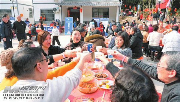 村民、游客共同舉杯,相互送上新春祝福。 記者 李春梅 攝