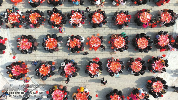 百桌壩壩宴開(kāi)席。 記者 李春梅 攝