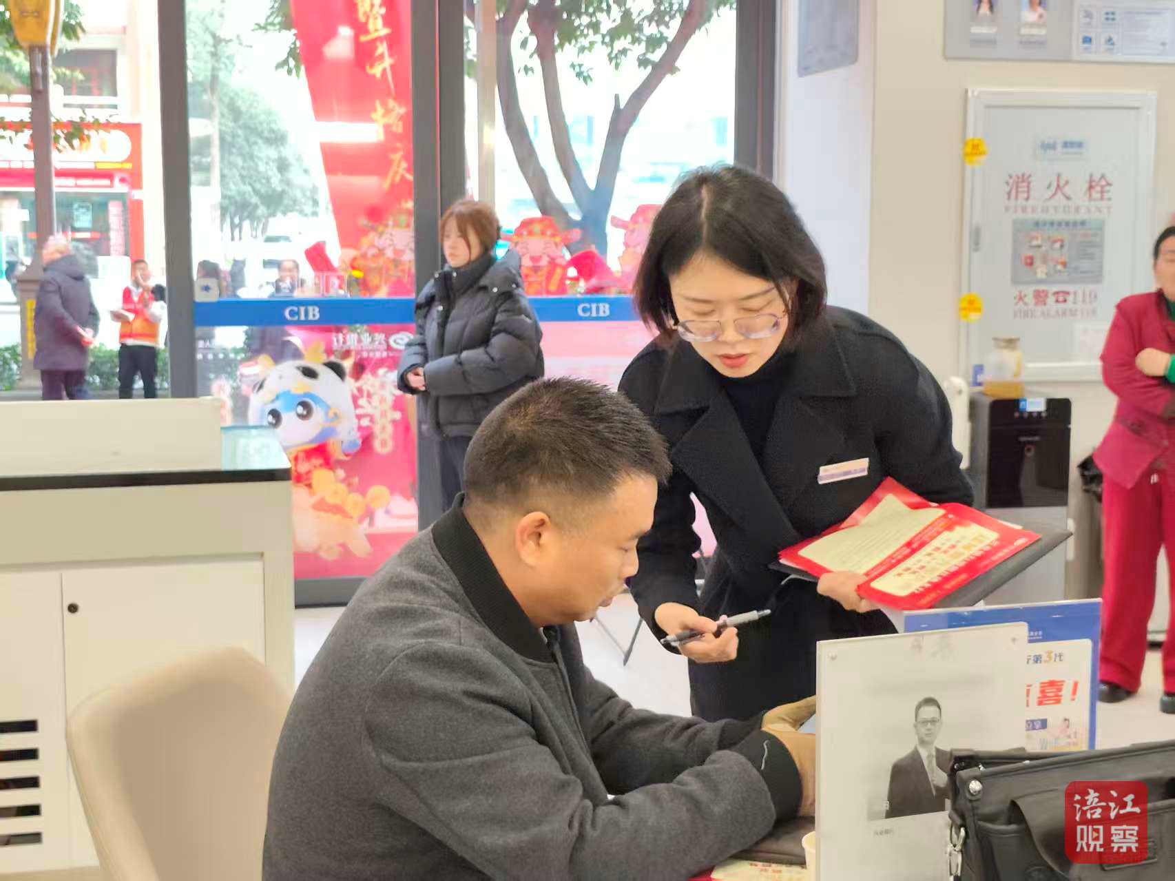 不僅如此,江油支行廳堂還有融在細(xì)節(jié)里的滿滿“人情味”:近20平方米的“興公益”惠民驛站,配備老花鏡、輪椅、急救藥箱等,暖黃色的原木色調(diào)裝潢與生機(jī)盎然的綠植點(diǎn)綴,搭配“興福龍”IP形象更顯親和,讓銀行網(wǎng)點(diǎn)成為了全體市民的“歇腳地”,真正實(shí)現(xiàn)了“科技有速度,服務(wù)有溫度”。