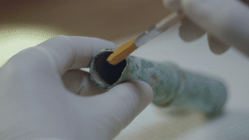 在廣西博物館“匠心·續(xù)華年——文物保護(hù)修復(fù)展”里,參觀者可以透過兩面玻璃,看到兩個(gè)修復(fù)室里的真實(shí)工作場(chǎng)景,文物修復(fù)的“進(jìn)行時(shí)”也成為了“展品”。