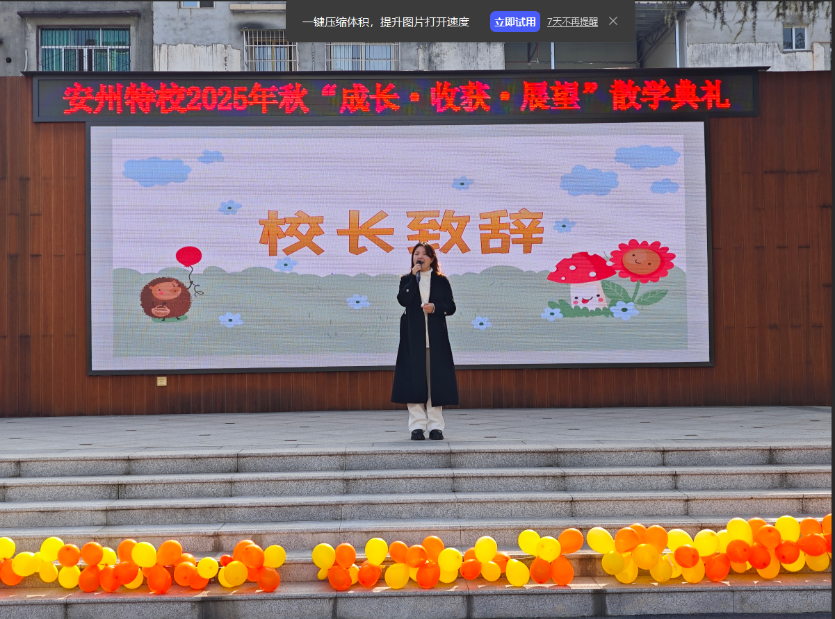 1月21日上午,安州區(qū)特殊教育學(xué)校在學(xué)校操場(chǎng)舉行了以“成長(zhǎng)?收獲?展望 ”為主題的2025年秋季散學(xué)典禮。全校師生及陪讀家長(zhǎng)齊聚一堂,共同回顧一學(xué)期的成長(zhǎng)點(diǎn)滴,見(jiàn)證收獲的喜悅,展望美好的未來(lái)。