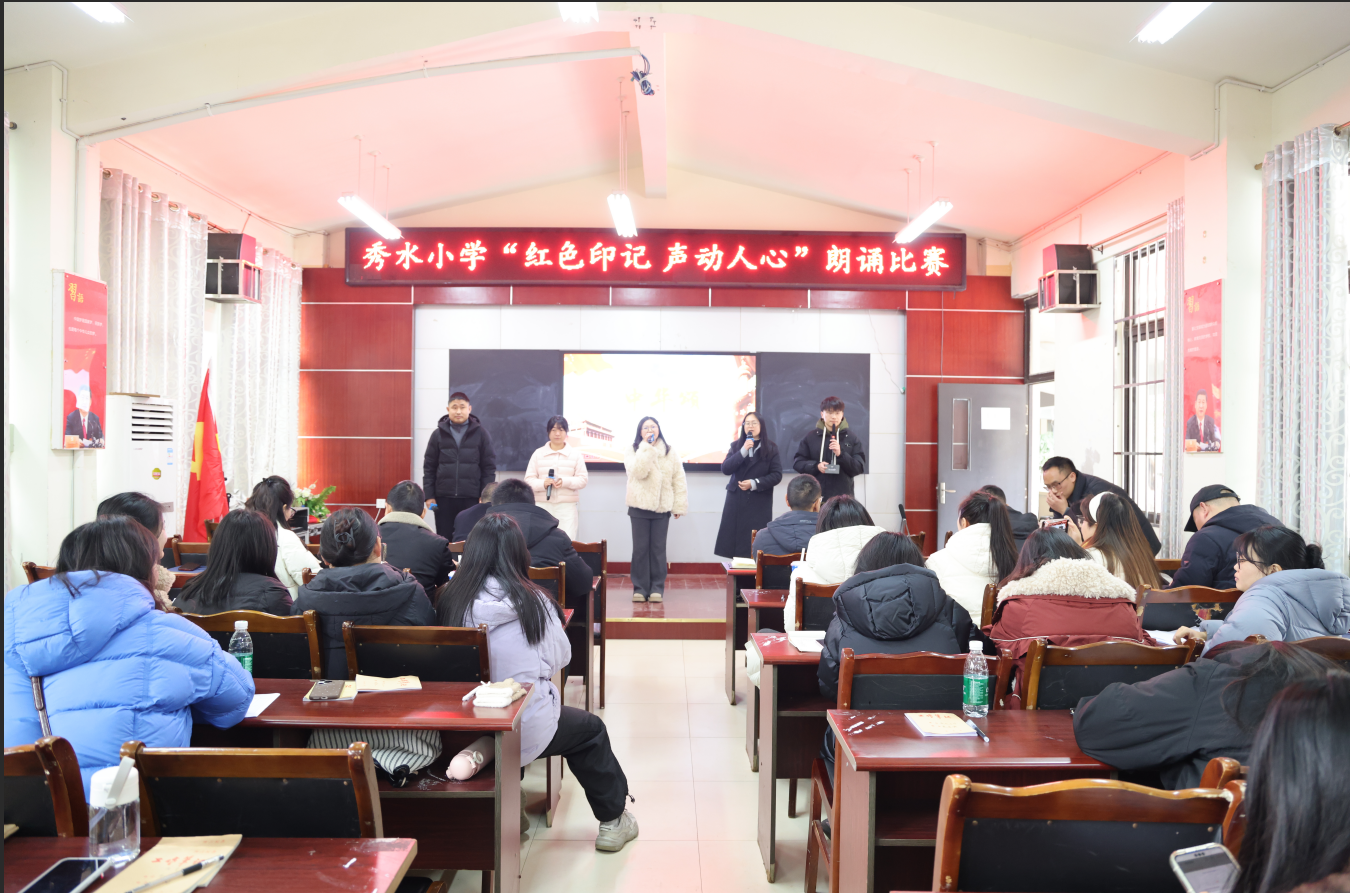 為了重溫崢嶸歲月,傳承紅色精神,厚植師生家國(guó)情懷,1月27日,安州區(qū)秀水小學(xué)在學(xué)校會(huì)議室成功舉辦了以“紅色印記 聲動(dòng)人心”為主題的黨建帶團(tuán)建主題朗誦比賽活動(dòng)。20余位團(tuán)員教師踴躍參與比賽,現(xiàn)場(chǎng)氣氛莊重而熱烈。