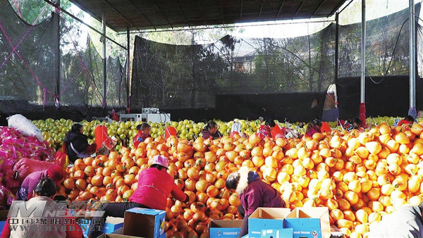 村民對蜜柚進(jìn)行挑選、裝箱。