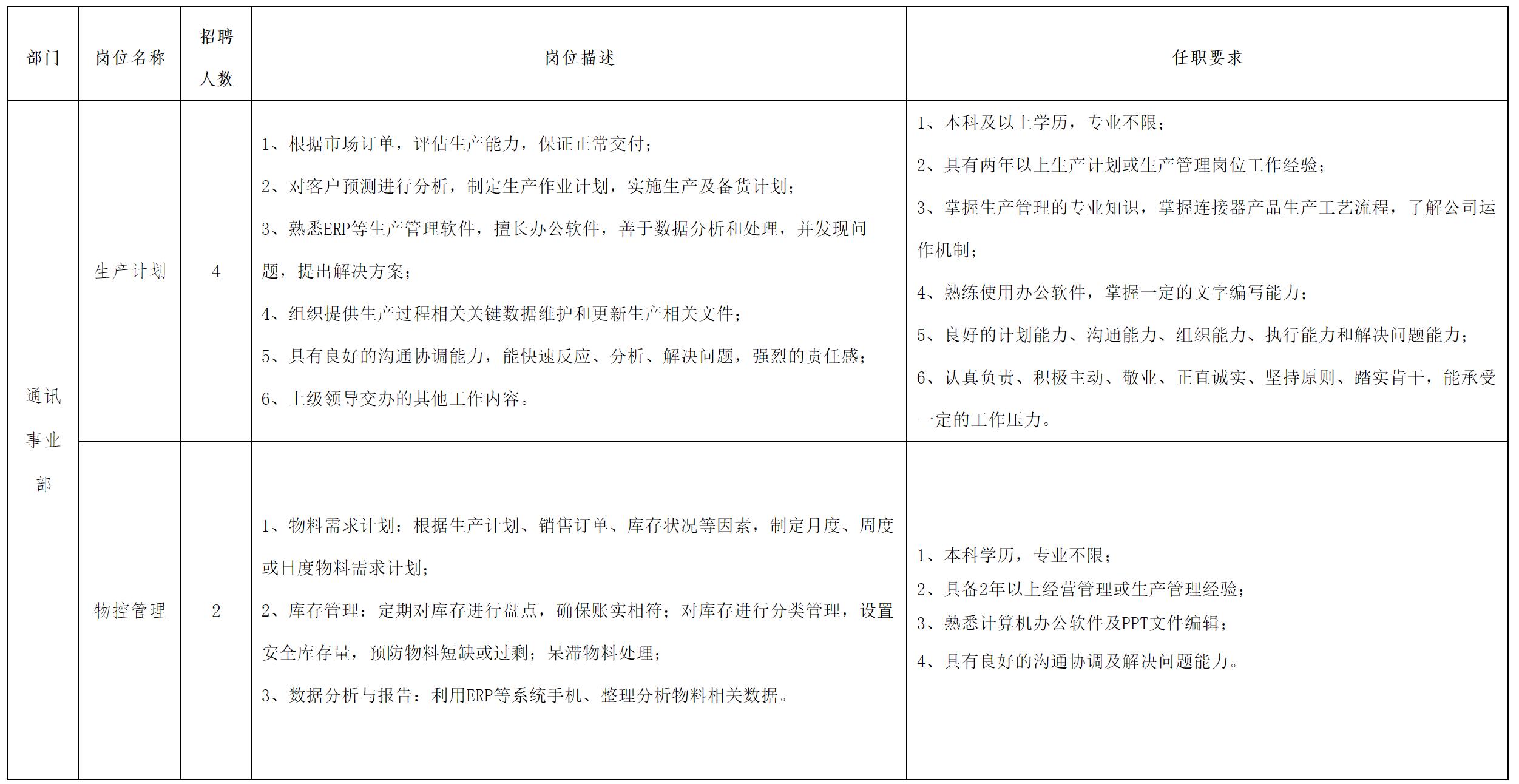 現(xiàn)因公司經(jīng)營(yíng)發(fā)展需要,現(xiàn)面向長(zhǎng)虹集團(tuán)內(nèi)部、外部誠(chéng)聘生產(chǎn)計(jì)劃等崗位人員,具體崗位招聘信息公告如下: