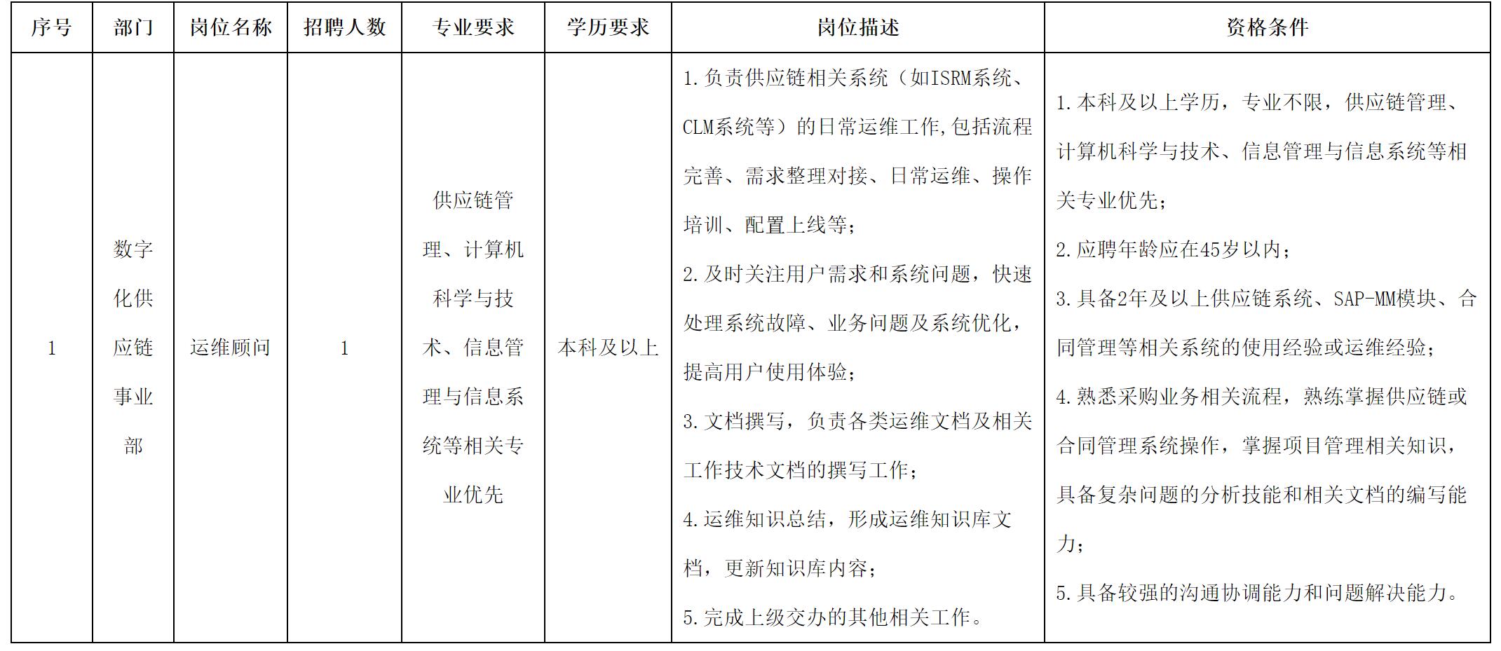 根據(jù)公司經(jīng)營發(fā)展需要,面向社會公開招聘以下崗位: