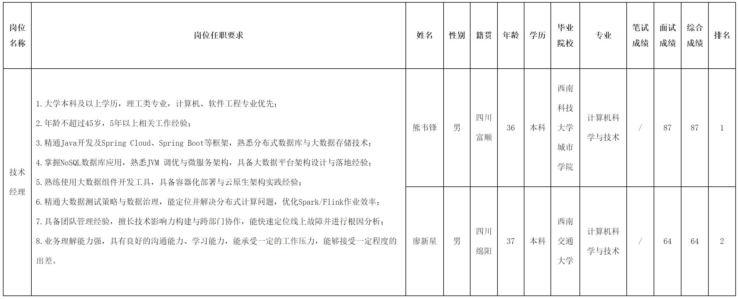根據(jù)四川虹信軟件股份有限公司發(fā)布的招聘公告及招聘相關(guān)規(guī)定,經(jīng)面試等程序,現(xiàn)將測(cè)試成績(jī)予以公示。