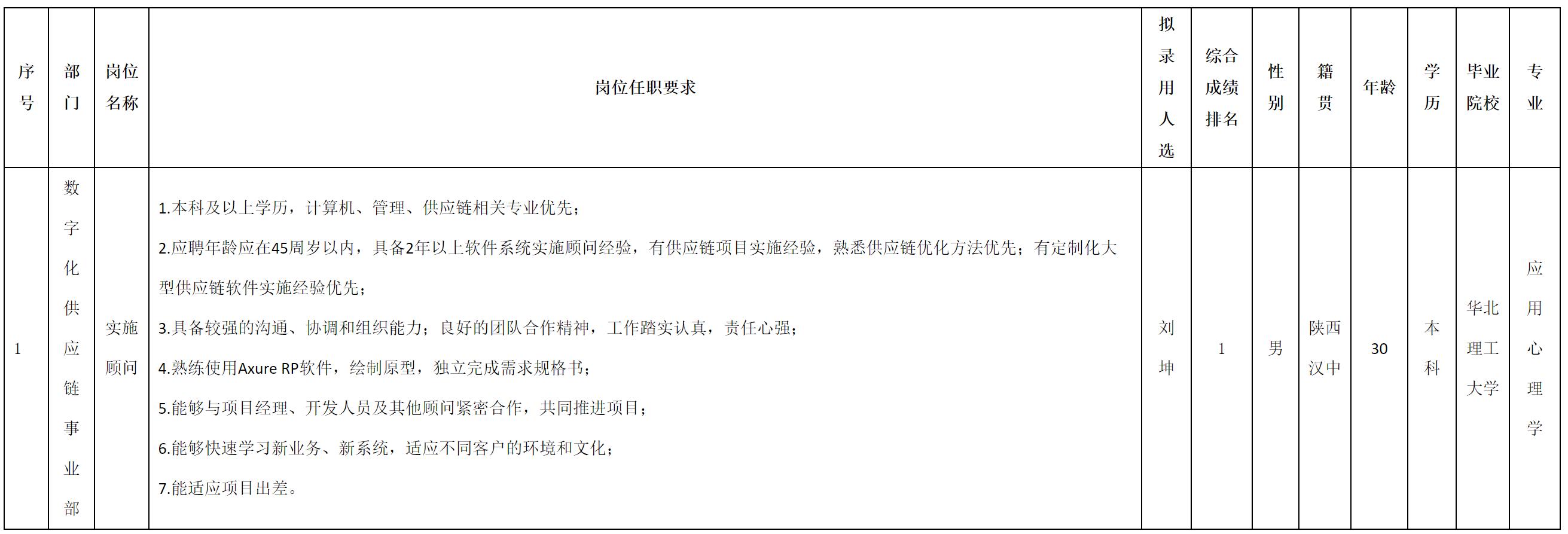 根據(jù)四川虹信軟件股份有限公司發(fā)布的招聘公告及招聘相關(guān)規(guī)定,經(jīng)測(cè)試、考察、體檢等程序,擬錄用劉坤同志到四川虹信軟件股份有限公司工作,現(xiàn)予以公示,具體情況如下: