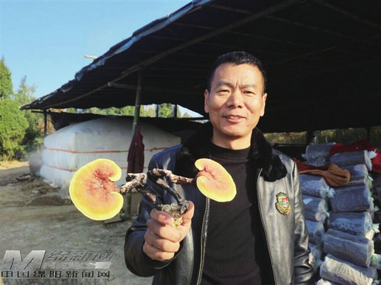 靈云仙芝家庭農(nóng)場負(fù)責(zé)人展示基地種植的靈芝。 記者 陳元松 攝