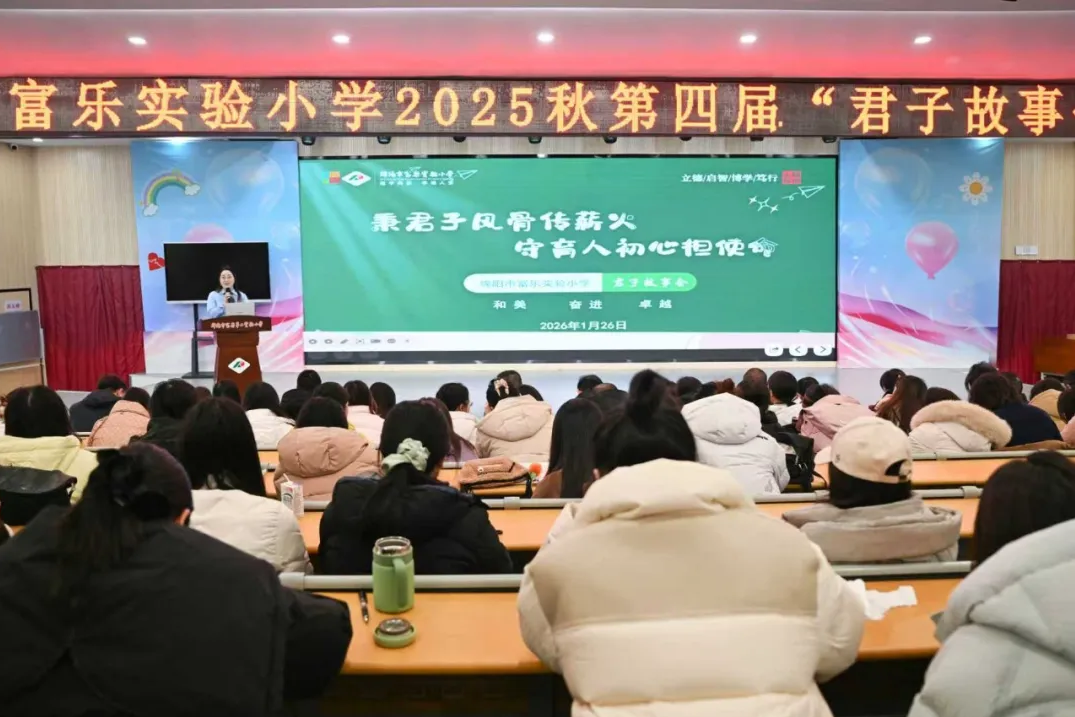 為了大力弘揚(yáng)教育家精神,充分展現(xiàn)教師的奮斗成果和精神風(fēng)貌,引導(dǎo)廣大教師落實(shí)立德樹人根本任務(wù),2026年1月26日上午,綿陽市富樂實(shí)驗(yàn)小學(xué)舉行了以“秉君子風(fēng)骨傳薪火,守育人初心擔(dān)使命”為主題的第四屆君子故事會(huì)活動(dòng)。全體教師齊聚一堂,在一段段真摯動(dòng)人的分享中,共赴一場(chǎng)浸潤(rùn)心靈的教育之約。
