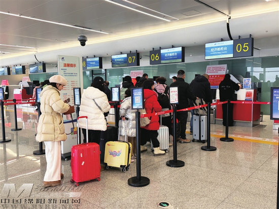 綿陽機場,旅客值機。 記者 唐舒琪 攝