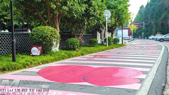 愛心彩繪一路延伸。 袁魏 攝