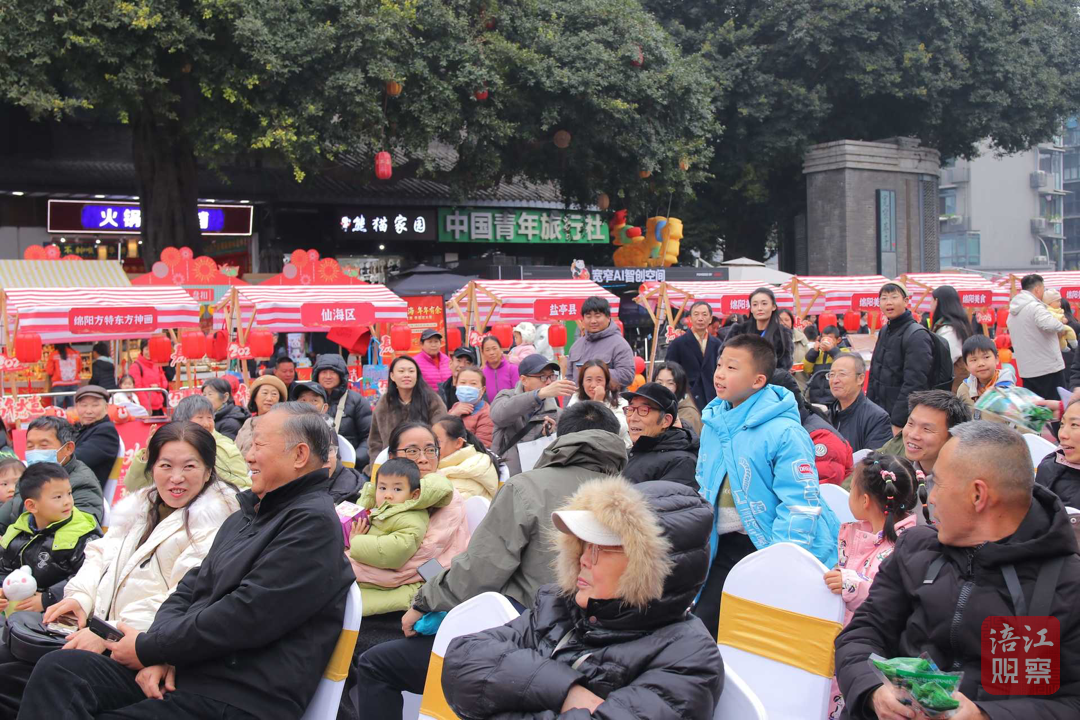 舞臺區(qū)同樣熱鬧非凡。隨著主持人一聲“青睞綿陽·歡喜過年,我們寬窄巷子里見!”文藝演出正式拉開帷幕。歌舞、民俗表演輪番上陣,將“李白故里、詩意綿陽”的浪漫,“熊貓家園、生態(tài)綿陽”的靈動,“煙火綿陽、安逸綿陽”的溫情一一呈現(xiàn)。