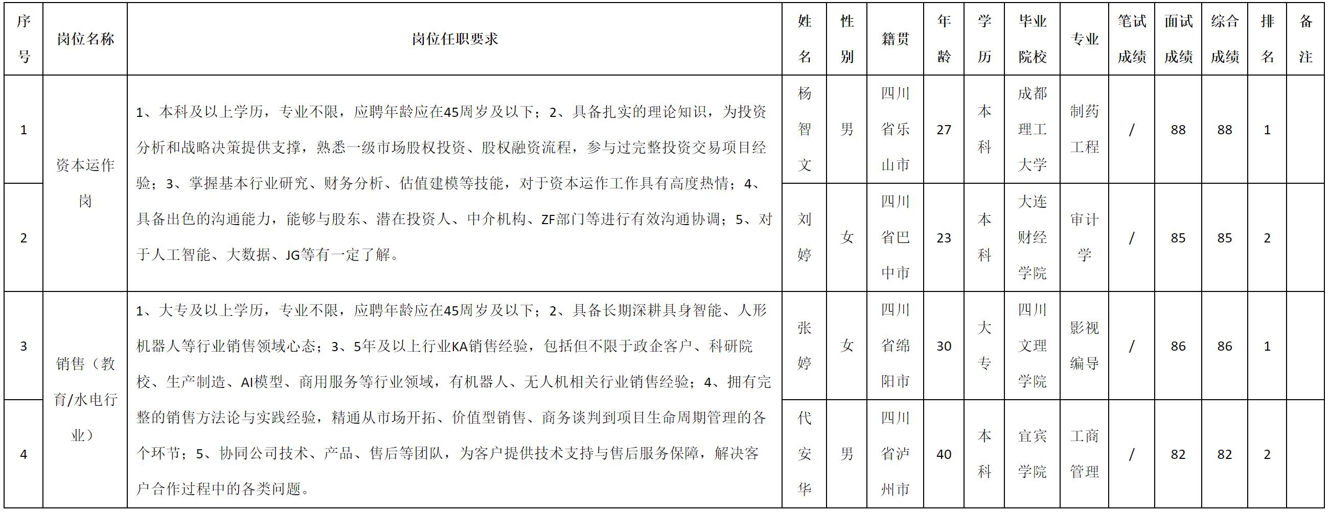 根據(jù)四川九洲投資控股集團有限公司軟件與數(shù)據(jù)智能產(chǎn)業(yè)發(fā)布的招聘公告及招聘相關(guān)規(guī)定,現(xiàn)將測試成績予以公示。