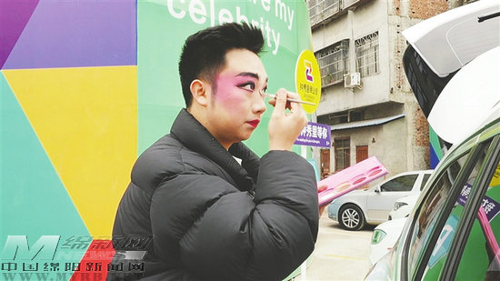 上午演出結(jié)束已近12時。桂豪杰匆匆卸妝,臉上的油彩還沒完全洗凈,便又踏上下一場演出的路程。“下午還要趕到游仙參加演出。”他看了看手機上的日程,“明天更滿,有三場。”