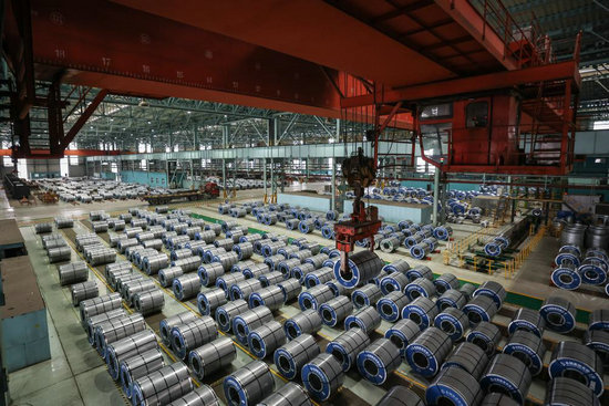 2025年12月6日,鞍鋼集團(tuán)本鋼板材冷軋總廠第三冷軋廠成品庫。新華社記者 潘昱龍 攝