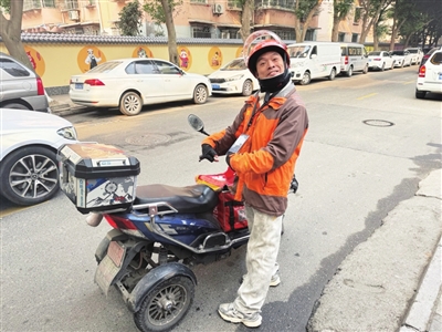 熊天宇出發(fā)送外賣。 記者 李春梅 攝