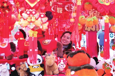 在花園市場,一眼望去滿眼喜慶。紅彤彤的燈籠、創(chuàng)意生肖飾品、燙金春聯(lián)福字、吉祥中國結(jié)與創(chuàng)意窗花……除了年貨,各種過年“氛圍”裝飾品同樣購銷兩旺。