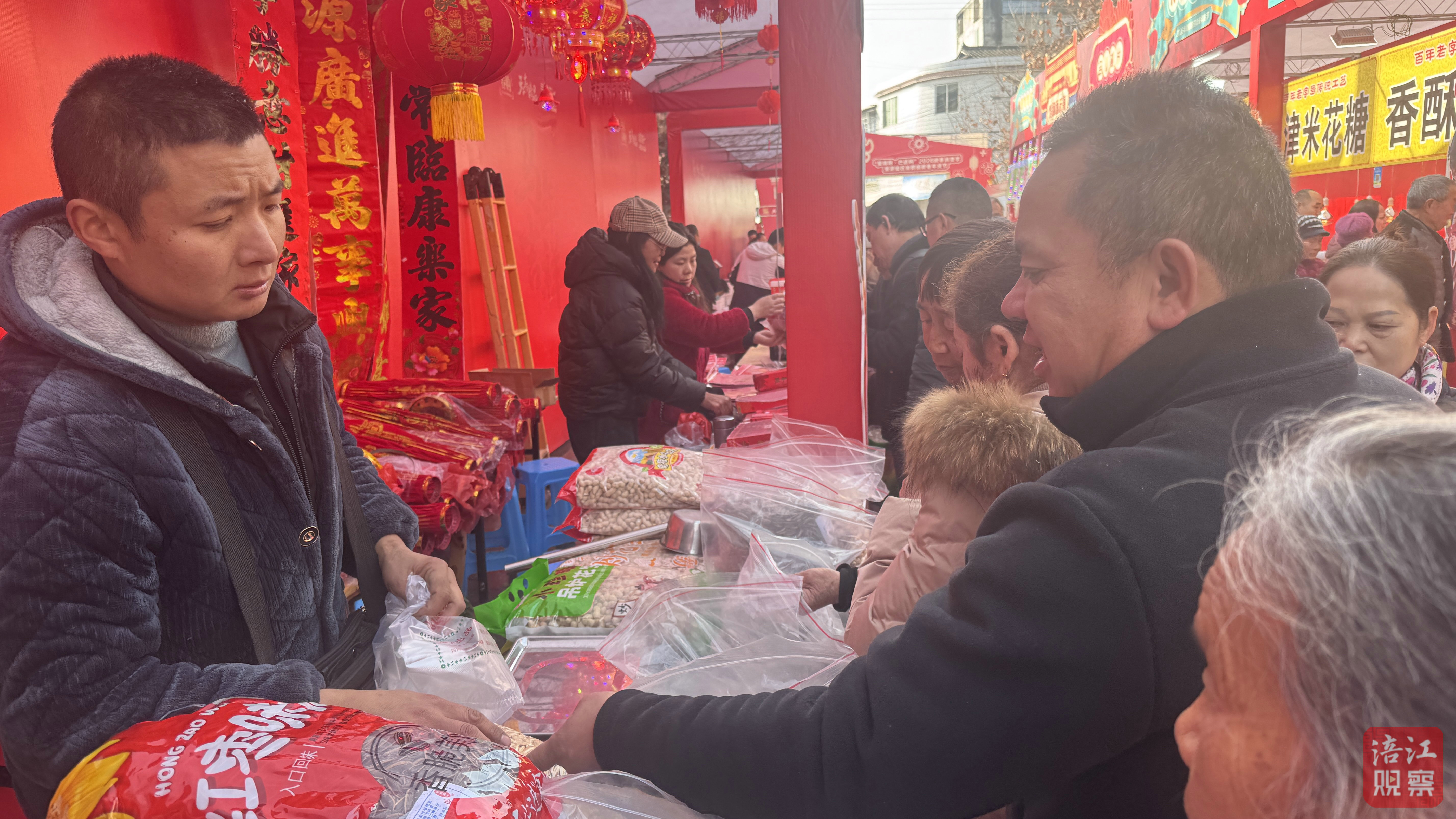 集市上,紅紙金字的春聯(lián)與福字交相輝映,鋪展出一道溫暖的風(fēng)景;剛出籠的米糕熱氣裊裊,芝麻燒餅金黃酥脆,各式餡餅香氣四溢;糖果攤旁,酥糖、奶糖、沙琪瑪備受歡迎。歡聲笑語中,人人手提滿滿的年貨,空氣中交織著糖香與臘味,將春節(jié)的溫馨愈釀愈濃。