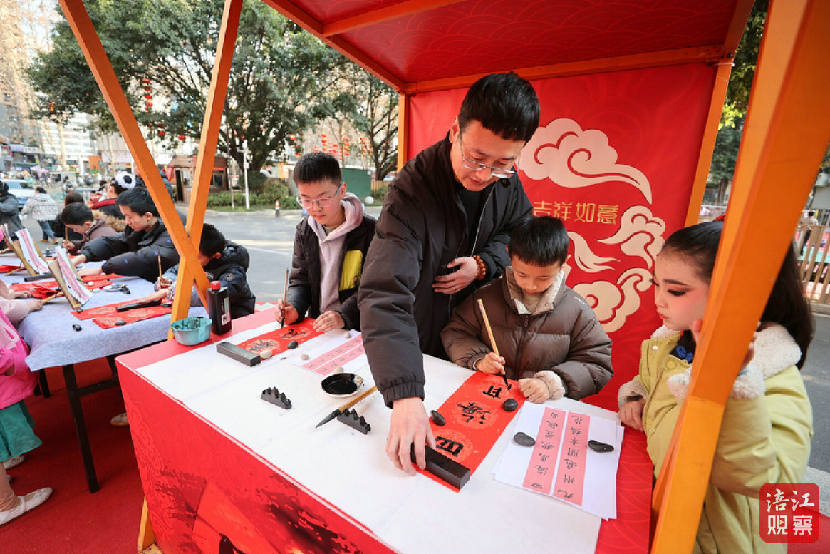 晚會外場布置成為吸睛亮點,圍繞馬年新春打造的展區(qū),讓大小觀眾提前沉浸在濃郁的年味之中?,F(xiàn)場設(shè)置了寫春聯(lián)寫福字、畫糖人、剪紙剪窗花、布藝展覽四大民俗體驗區(qū),孩子們提筆寫福、巧手剪窗花,家長與孩子一同在心愿樹上懸掛祈福牌,感受傳統(tǒng)民俗的魅力。