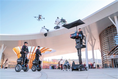 民警在綿陽中華大熊貓苑通過先進(jìn)警用裝備執(zhí)勤,維護(hù)景區(qū)秩序。 記者 劉晏男 攝