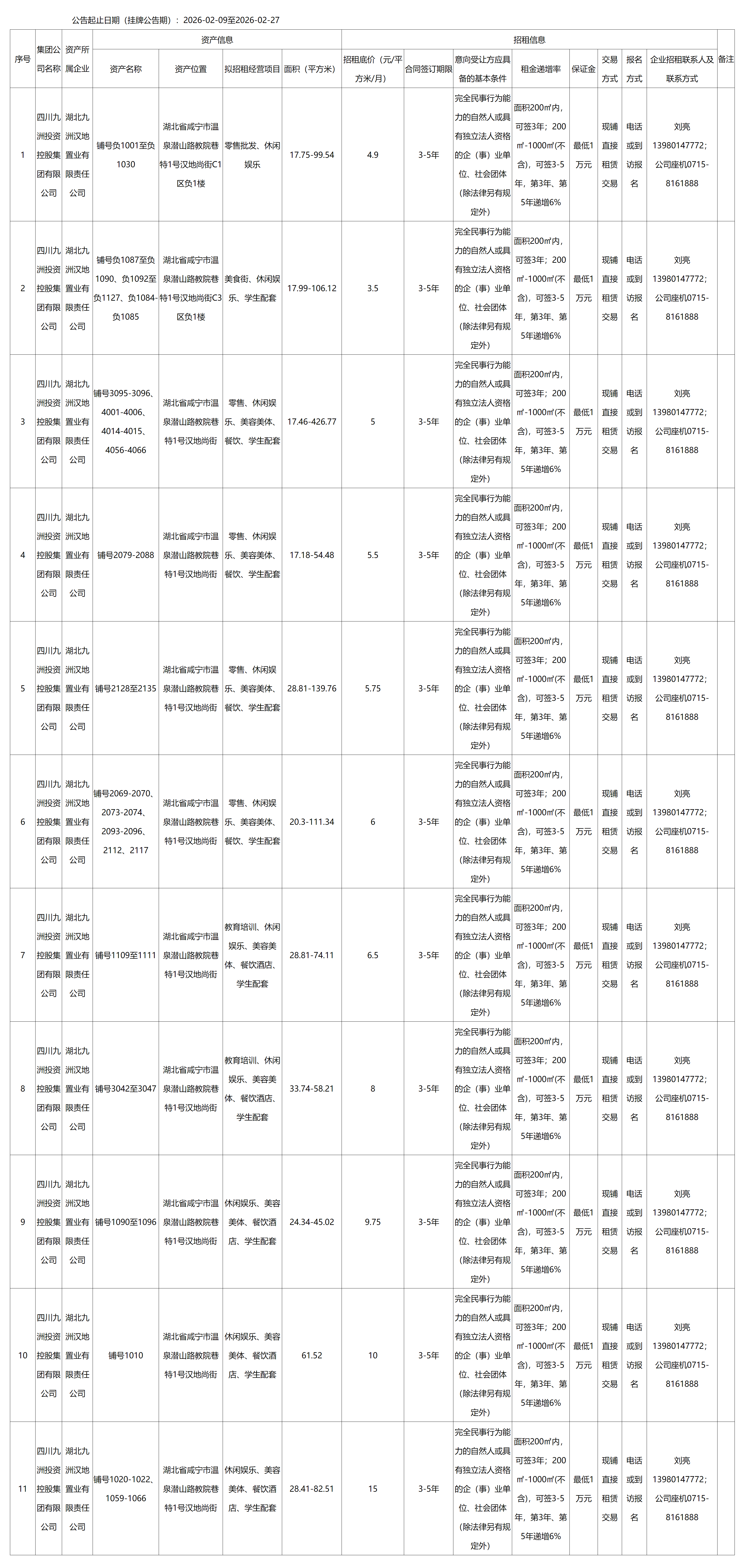 四川九洲千城商業(yè)管理有限公司湖北項目部漢地尚街商鋪出租公告