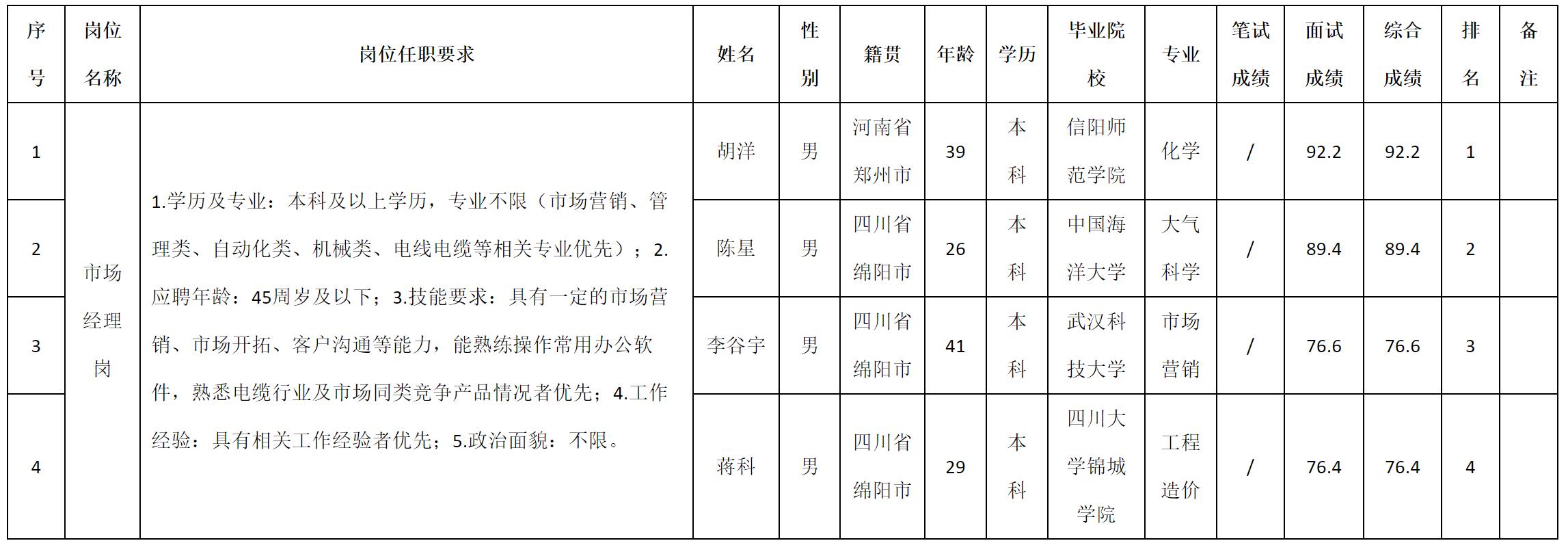 根據(jù)四川九洲線纜有限責任公司發(fā)布的招聘公告及招聘相關(guān)規(guī)定,現(xiàn)將測試成績予以公示。