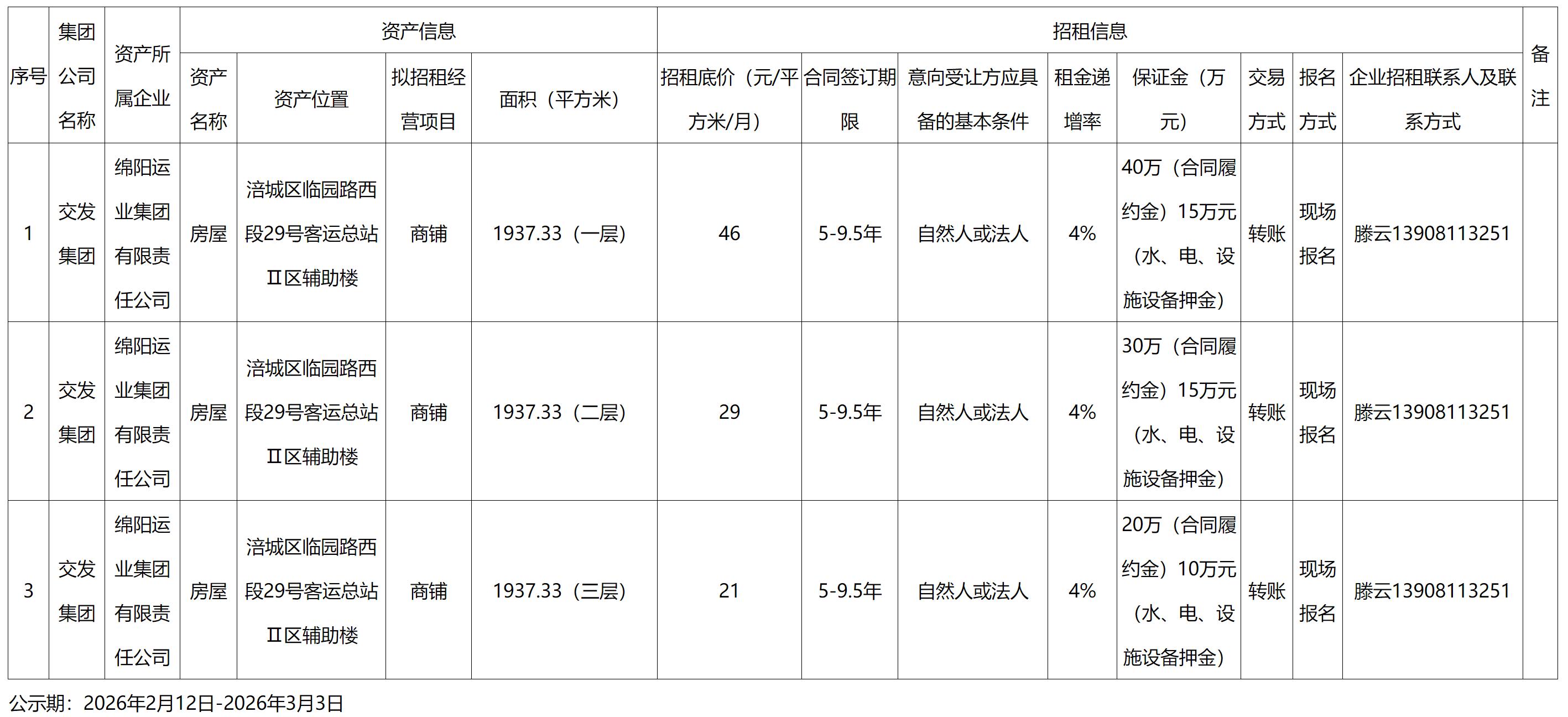 綿陽運業(yè)集團有限責任公司資產出租公告
