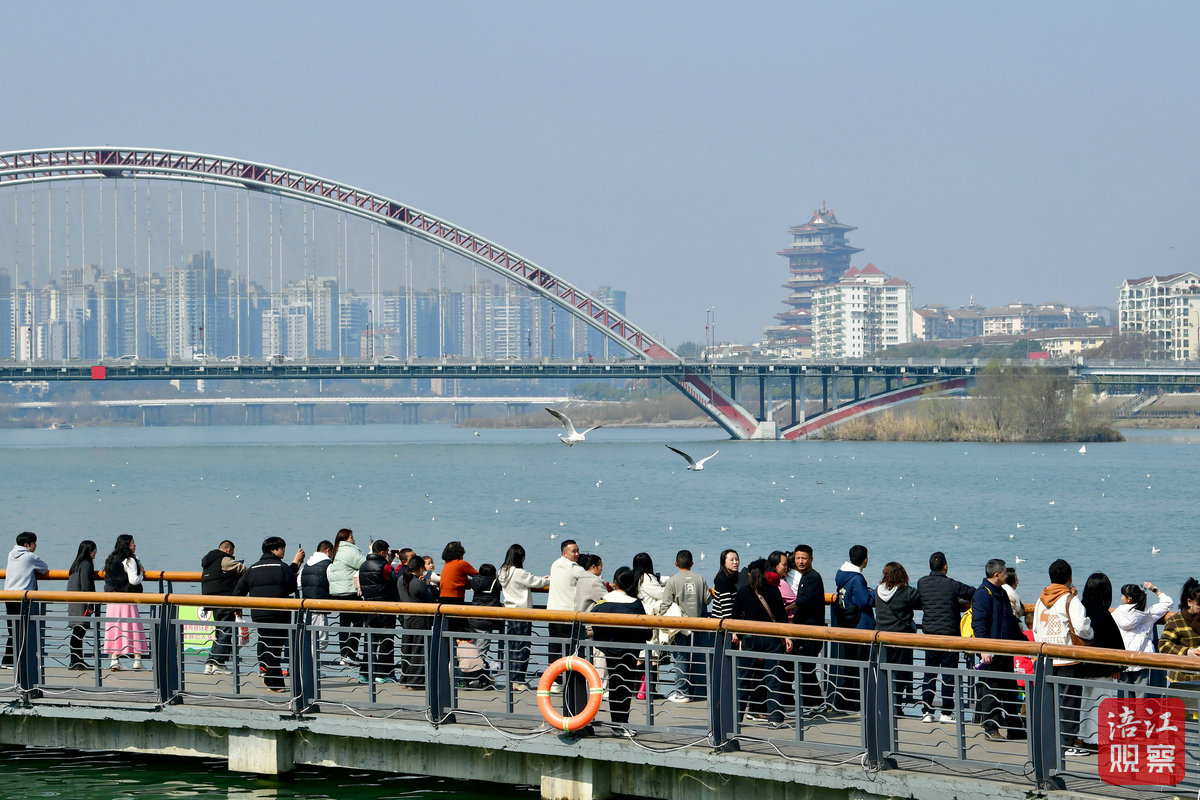 市民在綿陽城區(qū)三江湖國家濕地公園觀賞紅嘴鷗。涪江觀察記者 王勇攝