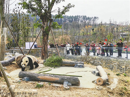 綿陽中華大熊貓?jiān)?,游客觀賞大熊貓。記者 李春梅 攝