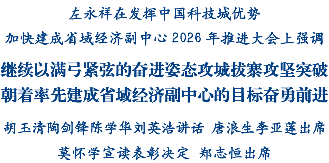 綿陽新聞網(wǎng)訊 2月24日,發(fā)揮中國科技城優(yōu)勢加快建成省域經(jīng)濟副中心2026年推進大會召開,省委常委、市委書記左永祥出席會議并講話。他強調(diào),要深入學習貫徹習近平總書記關于區(qū)域協(xié)調(diào)發(fā)展的重要論述和對四川對綿陽工作系列重要指示精神,認真落實黨中央、國務院和省委、省政府部署要求,繼續(xù)以滿弓緊弦的奮進姿態(tài)攻城拔寨、攻堅突破,推動“十五五”良好開局,朝著率先建成省域經(jīng)濟副中心的目標奮勇前進,奮力譜寫中國式現(xiàn)代化綿陽新篇章。