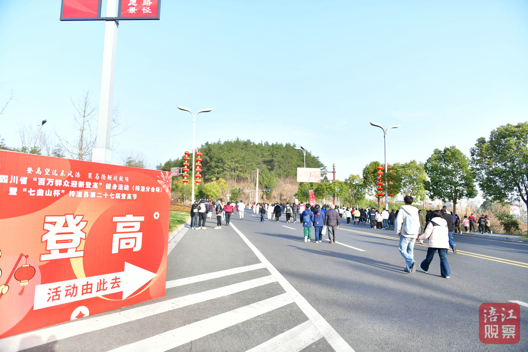 8:30,隨著清脆的發(fā)令聲響起,登高群眾如潮水般從梓潼縣城北新區(qū)廣場(chǎng)分批次有序出發(fā)。他們沿著既定的登高線路,向著終點(diǎn)七曲山全力進(jìn)發(fā)?,F(xiàn)場(chǎng)人山人海,熱鬧非凡。