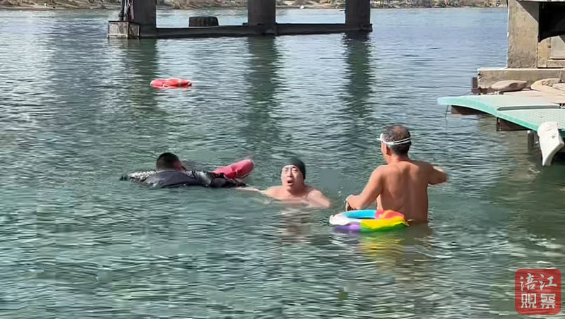 當(dāng)時(shí),正在附近進(jìn)行冬泳鍛煉的72歲賴大爺和62歲何大爺發(fā)現(xiàn),落水者即將沉入水中。兩位老人沒(méi)有絲毫猶豫,立即拿起救生圈,奮力游向落水者。在冰冷刺骨的江水中,他們拼盡全力,最終成功將男子營(yíng)救上岸。