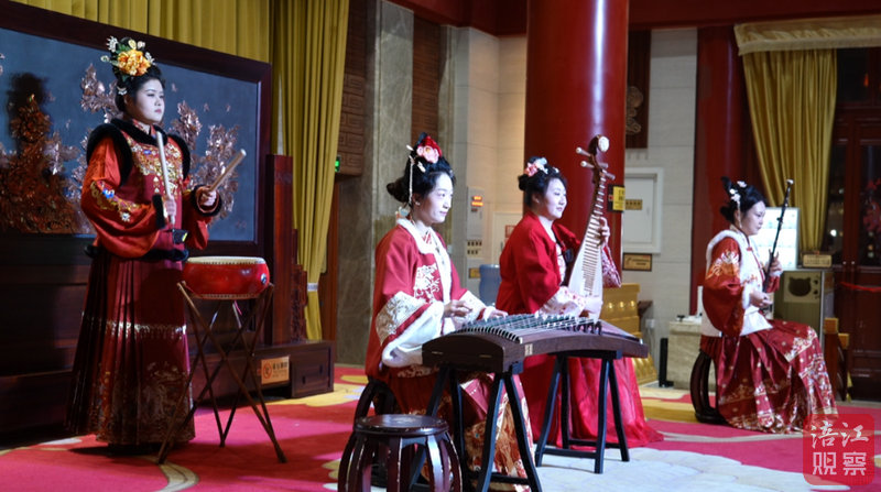 夜幕降臨,越王樓華燈璀璨、流光溢彩。二樓平臺上,黃梅戲、川劇變臉等非遺節(jié)目輪番上演,贏得陣陣掌聲;十五樓展廳內,馬年主題民樂演奏如期開演,二胡、古箏合奏《賽馬》激昂奔放,奏響新春樂章。