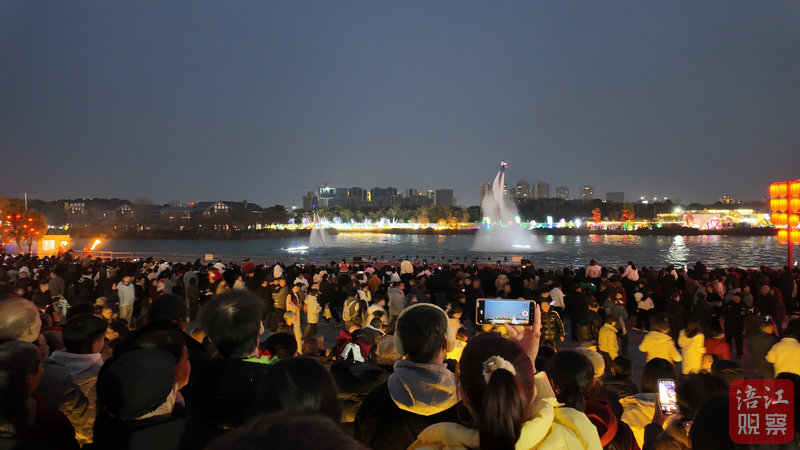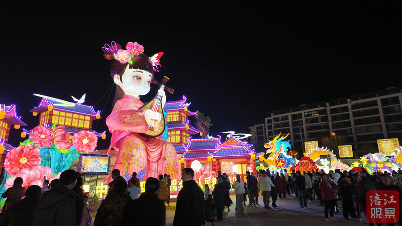 除了燈組,水上演出,漢服魚燈隊(duì)、財(cái)神、李白等NPC巡游互動(dòng),為燈會(huì)增添了更多趣味。