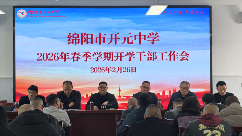 為了確保2026年春季開學(xué)各項工作平穩(wěn)、有序、高效推進,明確新學(xué)期工作方向,凝聚管理共識,2月26日下午,綿陽市開元中學(xué)召開了以“凝心聚力啟新程 篤行實干謀發(fā)展”為主題的2026年春開學(xué)干部工作會。該校領(lǐng)導(dǎo)班子成員及全體中層干部參會,會議全面部署新學(xué)期各項重點工作,為新學(xué)期學(xué)校高質(zhì)量發(fā)展謀篇布局。會議由黨委副書記、校長敬正雄主持。