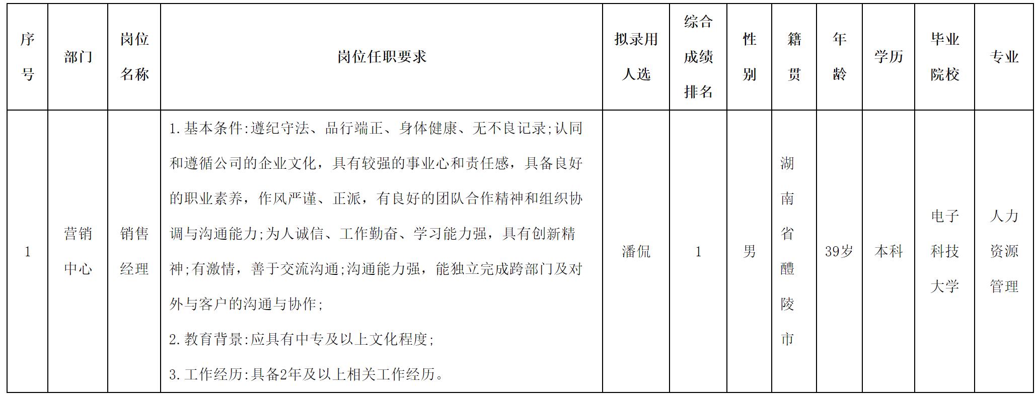 根據(jù)四川愛(ài)聯(lián)科技股份有限公司發(fā)布的招聘公告及招聘相關(guān)規(guī)定,經(jīng)面試,擬錄用潘侃同志到營(yíng)銷(xiāo)中心工作,現(xiàn)予以公示,具體情況如下: