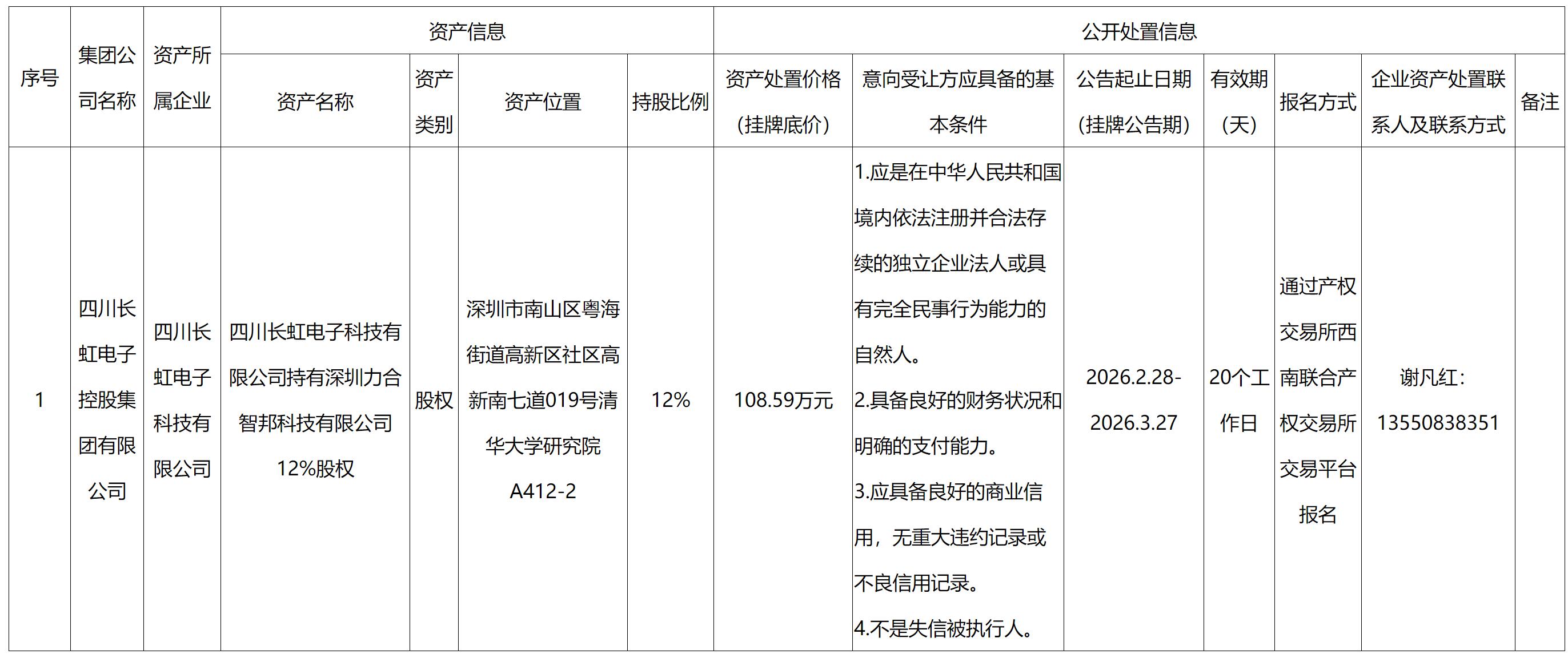 四川長虹電子科技有限公司資產(chǎn)處置公告