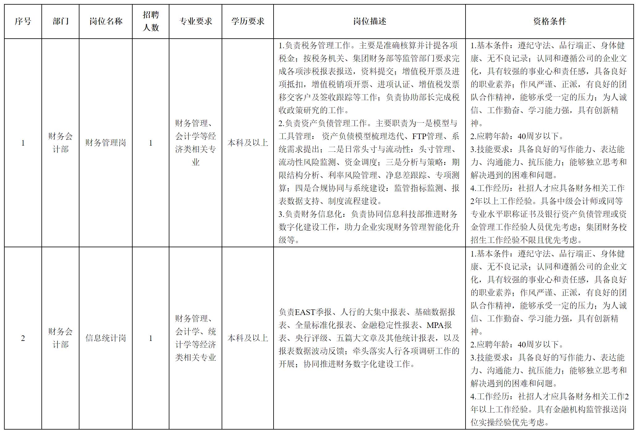 現(xiàn)因經(jīng)營(yíng)發(fā)展需要,公開(kāi)招聘財(cái)務(wù)管理崗、信息統(tǒng)計(jì)崗等崗位: