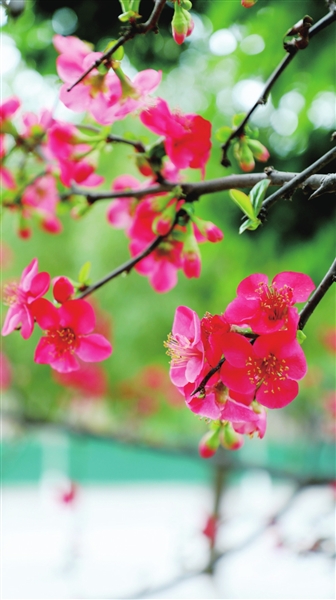 鹽亭縣城街頭盛放的海棠。 記者 彭紫薇 攝