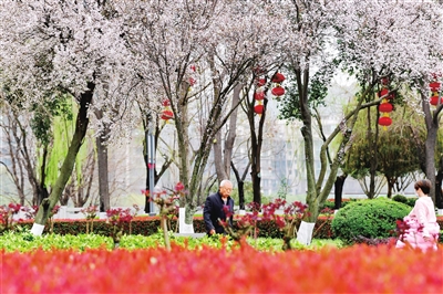 綿陽(yáng)城區(qū)處處花紅柳綠:粉若煙霞的垂絲海棠、白花似雪的紅葉李、垂落如瀑的嫩綠柳絲……滿目皆春,滿城芬芳?!∮浾?王勇 攝
