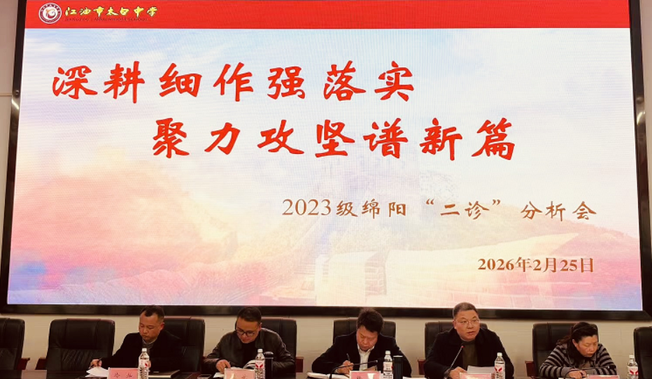 風(fēng)勁潮涌,自當(dāng)揚帆破浪;任重道遠(yuǎn),更需策馬加鞭。江油市太白中學(xué)相關(guān)負(fù)責(zé)人表示,此次分析會總結(jié)得失、凝聚共識、明確路徑。全體教師將以更堅定的信念、更務(wù)實的作風(fēng)、更精準(zhǔn)的舉措,同心同向、篤行不怠,奮力鑄就“三診”新輝煌,全力沖刺決勝階段,力爭在馬年高考中,馬到功成、再譜新篇?。?strong>劉宇秦 汪 進(jìn) 黃友勇)