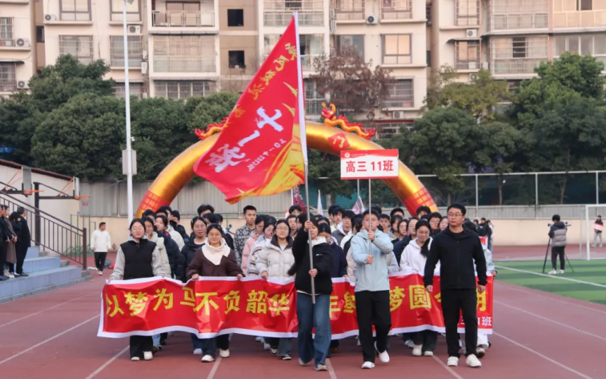 儀式在莊嚴(yán)的升國(guó)旗、奏唱國(guó)歌中拉開(kāi)帷幕,鮮艷的五星紅旗冉冉升起,點(diǎn)燃了全體師生的拼搏熱情。隨后,全體師生齊唱校歌、共誦“智、仁、勇、新”校訓(xùn),熟悉的旋律與鏗鏘的校訓(xùn),凝聚起同心奮進(jìn)、聚力攻堅(jiān)的強(qiáng)大力量。高三各班依次入場(chǎng),以精煉的班級(jí)介紹展現(xiàn)班級(jí)風(fēng)采,盡顯少年意氣與追夢(mèng)決心。